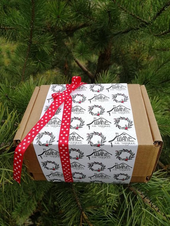 В короб помещается 2-3 баночки "Шале на чердаке" 220 мл или набор предметов примерно равный им по объему. Например: пряник, елочная игрушка, небольшие упаковки чая, печенья, конфет.